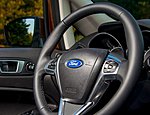 Από τα πρώτα μέτρα οδήγησης -ακόμα και με... κλειστά μάτια- αντιλαμβάνεσαι ότι οδηγείς ένα υπερυψωμένο Fiesta. Τεράστια η επιτυχία (για άλλη μία φορά) των μηχανικών της Ford να προσδώσουν όσο περισσότερο από τον οδηγικό «αέρα» του supermini τους σε ένα SUV. Το EcoSport λοιπόν είναι εκπληκτικά άκαμπτο (έχει γίνει εκτεταμένη χρήση χάλυβα υπερυψηλής αντοχής) και με στήσιμο που δεν είναι ούτε κουραστικά σπορτίφ ούτε ανέραστα μαλακό. Περνά από λακκούβες, μπαίνει στο χώμα (έχει 190 mm απόσταση από το έδαφος, γωνία προσέγγισης 21 μοιρών, γωνία αναχώρησης 33,3 μοιρών και βάθος βύθισης 550 mm!), χωρίς να δυσκολεύεται να κινηθεί με άνεση και υποδειγματικό έλεγχο. Είναι κυριολεκτικά μεγάλο «κρίμα» που δεν εφοδιάζεται και με κάποιου είδους τετρακίνηση. Το τιμόνι μικρό σε διάμετρο (αλλά και με λεπτή στεφάνη) είναι όσο ακριβές περιμένεις από ένα Ford, δίνοντας σου όλες τις πληροφορίες που χρειάζεσαι σε σβέλτη οδήγηση στην άσφαλτο. Δυστυχώς, με αυτό το τέμπο θα υποστρέψει νωρίς λόγω των ελαστικών της Hankook που στην άσφαλτο δεν «ματσάρουν» καλά με το αυτοκίνητο. Επίσης το αυτοκίνητο θα γείρει λίγο περισσότερο από ό,τι περιμένεις και τα καθίσματα με την τυπική για την κατηγορία πλευρική στήριξη δεν θα σε κρατήσουν όπως θέλεις αλλά πάλι το Ecosport δεν είναι Fiesta ST. Εχει όμως την καρδιά του Fiesta Red&Black.