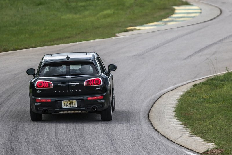 Αυτήν τη χρονιά τα πιο αργά πισωκίνητα μοντέλα απαιτούν σε αυτήν τη δοκιμασία χρήση ξεχωριστού τύπου, ώστε να παρέχουν τελικά το ζητούμενο τέλειο γύρο – ένα συνδυασμό μιας προσεκτικά διαχειρίσιμης υπερστροφής και μιας πεισματικής αφοσίωσης στο δεξί πεντάλ. Το Clubman JCW ALL4 δεν είναι ένα από αυτά τα αυτοκίνητα. Εντάξει, σαφώς είναι υποχρεωμένο να ψάχνει συνέχεια την υψηλή ταχύτητα, όπως τα υπόλοιπα μοντέλα χαμηλής ισχύος, αλλά οδηγώντας το με τον τρόπο που προαναφέρθηκε, το Mini είναι ένα παράδειγμα... συγκράτησης, ακριβέστερα μιας συγκρατημένης υποστροφής. Μη σχεδιάσετε, λοιπόν, να το βάλετε σε κάποια στροφή με το πίσω μέρος, αφού το Clubman δεν είναι και ο καλύτερος... χορευτής. Με άλλα λόγια δε θα κάνει... twerking στην είσοδο του Hog Pen και σίγουρα δε θα τρομάξει τον οδηγό του στα ανηφορικά «εσάκια» με τις απότομες μικρές στροφές. Επίσης, δε θα μεταδώσει στον οδηγό του ούτε μία ένδειξη υπερστροφής ισχύος τη στιγμή που περνά μέσα από το νερό στο σημείο Spiral. Το Mini είναι τόσο σταθερό, που μάλιστα η ταχύτητα εισόδου του στο Hog Pen είναι κατά κάτι παραπάνω από 4 km/h πιο υψηλή σε σχέση με του Subaru WRX, ενός μοντέλου που ολοκληρώνει το γύρο της πίστας VIR κατά 4,5 sec ταχύτερα. Η σταθερότητα είναι το όνομα αυτού του παιχνιδιού του Mini και, προστατεύοντας τα ελαστικά του -ειδικότερα τα μπροστινά-, είναι σημαντικό να παίρνει από αυτά ό,τι καλύτερο. Το γεγονός πως το Clubman βρίσκεται μόλις 0,6 sec πίσω από εκείνο το Mini, με το οποίο σημειώσαμε τον ταχύτερο γύρο αυτής της πίστας σε «Γύρο Αστραπή» (ένα τρίθυρο Cooper JCW το 2015), καταδεικνύει τις ικανότητες αυτού του μακρύτερου και βαρύτερου τετρακίνητου αυτοκινήτου. Οι τετραπίστονες δαγκάνες της Brembo παρέχουν στο Mini καλύτερες επιδόσεις επιβράδυνσης σε σχέση με τα περισσότερα μοντέλα, που σημείωσαν παρόμοιους χρόνους, μία σημαντική επιτυχία, με δεδομένο το αυξημένο βάρος των περίπου 1.600 κιλών του αυτοκινήτου. Μη σκεφθείτε πως αυτό το βάρος σημαίνει ότι αυτό το Clubman δεν είναι ένα Mini. Το άμεσο turn-in, το βαρύ τιμόνι και η εισαγωγή αέρα με το γνωστό θορυβώδες ταμπεραμέντο της είναι χαρακτηριστικά που δίνουν και εδώ το «παρών». Το ίδιο ισχύει και για το χαρακτήρα του αυτοκινήτου, ο οποίος σε κάνει να πιστεύεις πως αυτό περισσότερο υποστρέφει.