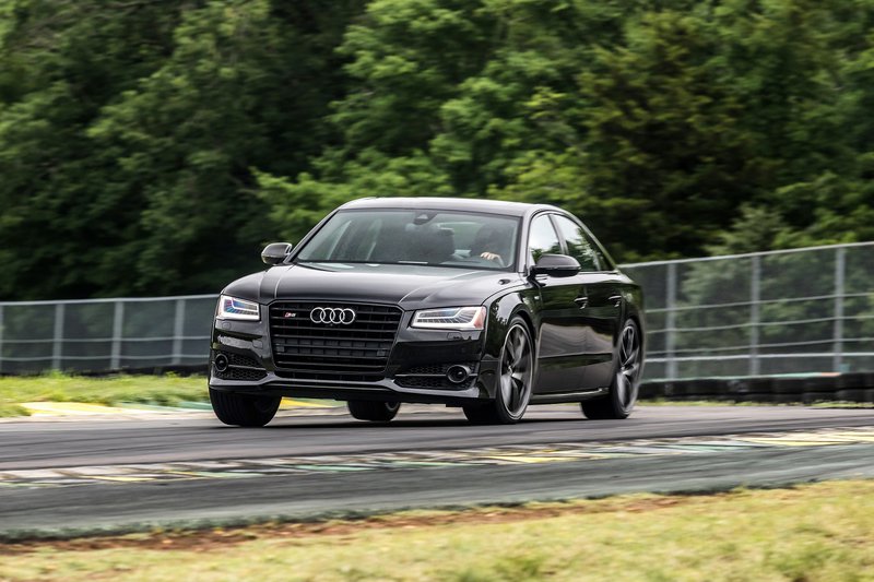 Σε σχέση με όλα τα μυστικά της δυναμικής συμπεριφοράς των αυτοκινήτων σε αυτόν το «Γύρο Αστραπή», ο συγκεκριμένος κατατάσσεται στους πιο... μη αναμενόμενους: Το Audi S8 Plus, αν και εφοδιαζόταν με ίδιου πλάτους ελαστικά εμπρός και πίσω και έφερε το 56,5% των περίπου 2.102 kg του στον μπροστινό άξονα, δεν επέδειξε επίμονη, υποστροφική συμπεριφορά. Κάνοντας το γύρο της πίστας με τόσο απίθανη επιθετικότητα και αμεσότητα, το S8 δοκίμασε τις θεμελιώδεις γνώσεις μας για τον κόσμο, στον οποίο ζούμε. Αν το μακρύτερο αυτοκίνητο της Audi παίρνει τις στροφές σχεδόν σαν άροτρο, πώς μπορούμε να είμαστε σίγουροι ότι ακόμα και ο πιο σκληρός εγκληματίας δεν είναι ένας αθώος έφηβος με λευκό ποινικό μητρώο; Το S8 όχι μόνο δεν μπαίνει στις στροφές ανυπόμονα, αλλά περιστρέφεται γύρω από τον κεντρικό άξονά του όταν έρχεται στην καμπή πλασαρισμένο, φανερώνοντας μία ασυνήθιστη για τετράθυρα αυτοκίνητα ουδετερότητα. Τα κεραμικά, ενισχυμένα με ανθρακονήματα, φρένα, που αποτελούν μέρος του επιπλέον πακέτου Dynamic (περίπου 9.500 ευρώ), επιβραδύνουν πιο ομαλά σε σχέση με τους σιδερένιους δίσκους των ανταγωνιστικών αυτοκινήτων, ακόμα κι αν η διαδρομή του πεντάλ του S8 επιμηκύνεται με τη θερμότητα. Στις πιο αργές στροφές, ο οδηγός παίζει έναν ενεργό ρόλο στην εξασφάλιση της ακολουθίας της πορείας του μπροστινού μέρους από την ουρά του αυτοκινήτου. Οι εντυπώσεις μας από το Audi ήταν αναμφίβολα επηρεασμένες από το δίδυμο των BMW Σειράς 7, το οποίο κινήθηκε με αδιατάρακτη σταθερότητα. Βέβαια, σαφώς και βοηθά το γεγονός πως το S8 είναι φτιαγμένο πάνω στο πιο κοντό από τα δύο μεταξόνια, που έχει η Audi για τη ναυαρχίδα της. Σε όλες τις σύγχρονες εκδόσεις της Σειράς 7, που διατίθενται στις ΗΠΑ, ο μπροστινός από τον πίσω άξονα απέχει κατά επιπλέον περίπου 22 cm σε σχέση με ό,τι συμβαίνει στο S8. Τα Dunlop στο Audi είναι επίσης πιο ευαίσθητα στη θερμότητα σε σχέση με τα Michelin των BMW, ολισθαίνοντας πιο εύκολα με κάθε απανωτή ενέργεια, που φθείρει τα ελαστικά. Αυτό το τελευταίο κομμάτι δεν εξασφαλίζει σαφώς ένα καλύτερο χρόνο γύρου, σίγουρα, όμως, κάνει το S8 πιο απολαυστικό στην οδήγηση.