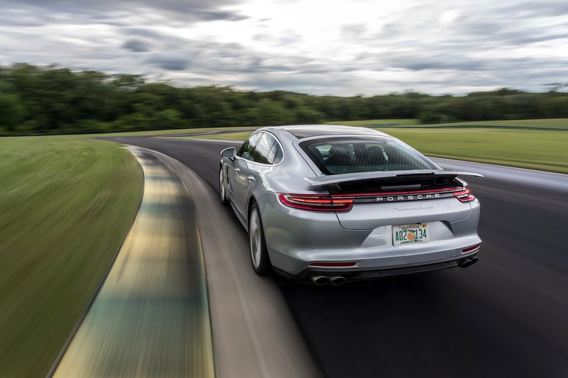 Όπως συνέβη και με την προηγούμενη Panamera (την Turbo S 1ης γενιάς), έτσι και με τη σύγχρονη κάναμε γύρους πίστας στο VIR με την Turbo (2ης γενιάς), που εφοδιάζεται με έναν turbo V8. Ωστόσο, η νεότερη εκδοχή είναι βαρύτερη κατά περίπου 104 kg σε σχέση με τον προκάτοχό της. Με άλλα λόγια, το επιπλέον βάρος θα έπρεπε να συνοδεύεται και από τη σχετική αύξηση της ισχύος, ώστε να πραγματοποιηθούν και οι βελτιωμένοι γύροι της πίστας. Η Porsche, όμως, πρόσφερε στο hatch της των 2.115 kg ένα μπουκέτο τεχνολογικών λύσεων, στις οποίες συμπεριλαμβάνονται ενεργές αντιστρεπτικές (σ.σ.: περίπου 4.300 ευρώ στις ΗΠΑ), τετραδιεύθυνση (σ.σ.: μέρος του πακέτου “Sport”, που στις ΗΠΑ κοστίζει περίπου 4.800 ευρώ) και δισκόφρενα από κεραμικό υλικό (σ.σ.: περίπου 7.700 ευρώ στις ΗΠΑ). Η συνδυαστική αποτελεσματικότητα αυτών των συστημάτων στη νέα έκδοση συνέβαλε στην επίτευξη του εξαιρετικού χρόνου της τάξης των 2:59.2, δηλαδή επετεύχθη μία βελτίωση 1,5 sec, παρότι η ανώτερη ταχύτητα έφτασε στην μπροστινή ευθεία τα 236 km/h, επομένως μόλις 1,6 km/h ταχύτερα σε σχέση με την παλιά Turbo S. Ωστόσο, όλη αυτή η τεχνολογία προσθέτει ένα στρώμα απομόνωσης, το οποίο αναμειγνύει κάπως τις εντυπώσεις. Στρίβοντας μέσα στα ανηφορικά «εσάκια» με σχεδόν 207 km/h, η αίσθηση του τιμονιού παραμένει κάπως αδιάφορη. Η ακολουθία των αλλεπάλληλων αλλαγών πορείας φυσιολογικά απαιτεί μικρές και ακριβείς επεμβάσεις από το τιμόνι. Οι... αυτοκινητοδρομίσιες, όμως, ρυθμίσεις της Panamera, οι οποίες προβάλλουν τη σταθερότητα στις υψηλές ταχύτητες, οδήγησαν τους δοκιμαστές μας στην αύξηση της γωνίας στροφής σε σχέση πάντα με την εντύπωση, που τους είχε δοθεί αρχικά. Οι ενεργές αντιστρεπτικές πραγματοποιούν αξιοπρόσεκτη δουλειά, καταφέρνοντας να διατηρούν το αμάξωμα σε οριζόντια θέση στις στροφές, αλλά αυτή η αφύσικη ομαλότητα μεγαλοποιεί την αίσθηση της απομόνωσης και μειώνει αυτήν της ταχύτητας. Η Panamera έχει μετατραπεί περισσότερο σαν τα μεγάλα sedan (Mercedes S-Class, BMW Σειρά 7, Audi Α8), τα οποία ανταγωνίζεται και δείχνει κάπως μεγαλύτερη από το απλώς «κάπως μεγαλύτερο από ένα μεσαίο» αυτοκίνητο, που είχαμε γνωρίσει αρχικά. Παρόλ’ αυτά, η Panamera παραμένει πολύ ικανή. Περνά με ορμή μέσα από τα ανηφορικά «εσάκια», όντας ταχύτερη από την 718 Cayman S (189 km/h έναντι 187 km/h) και εξίσου γρήγορη στο infield με 123 km/h, δύο τομείς, όπου οι σωστές ρυθμίσεις αποδεικνύουν την καλή δουλειά των μηχανικών. Θα θέλαμε, βέβαια, να τα αισθανθούμε λίγο πιο έντονα όλα αυτά, όπως συμβαίνει με τις Porsche, που -ως μοντέλα- αντί για όνομα έχουν αριθμούς. Αλλά και σε αυτήν την περίπτωση, κανένα από αυτά τα αυτοκίνητα δεν μπορεί να μετακινήσει με τέτοια ταχύτητα (και χάρη) τέσσερις ενήλικες μέσα στο Hog Pen μέσα σε συνθήκες απόλυτης άνεσης.