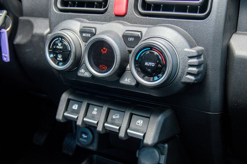 Υποστηρίζονται από κάμερα στο ύψος του εξωτερικού καθρέφτη και ραντάρ με σύστημα προειδοποίησης εκτροπής, προειδοποίηση αλλαγής λωρίδας, αναγνώριση πινακίδων κυκλοφορίας αλλά και σύστημα ελέγχου κατάβασης (Hill Descent Control), DSBS, καθώς και η οθόνη αφής με το γνώριμό μας multimedia περιβάλλον. Στο κεντρικό τούνελ, πίσω από τον 5άρη επιλογέα με τις… απελπιστικά κοντές σχέσεις, κρύβεται το «βαρύ πυροβολικό» του Jimny. Ο επιλογέας εμπλοκής της τετρακίνησης. Με την κίνηση να δίνεται υπό φυσιολογικές συνθήκες μόνο στους πίσω τροχούς, δύναται να εμπλακεί τετρακίνηση και με κοντές σχέσεις μετάδοσης (4WD-H και 4WD-L).