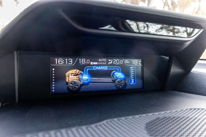Αντίθετα, οι στενές επαφές με το πεντάλ του φρένου έχουν τα γνωστά κέρδη σε ό,τι αφορά στη φόρτιση της μπαταρίας (και άρα της γενικότερης οικονομίας), καθώς και εδώ υπάρχει σύστημα ανάκτησης ενέργειας μέσω της πέδησης. Στα υπόλοιπα μηχανικά μέρη διατηρείται η κλασική τετρακίνηση της Subaru, η οποία υποβοηθείται πλέον από το εξελιγμένο σύστημα X-Mode με δύο επιλογές «Snow/Dirt» και «Deep Snow/Mud», όπου και ανάλογα προσαρμόζονται τα ηλεκτρονικά βοηθήματα, το κιβώτιο και η απόκριση του κινητήρα ενώ διατίθεται και Hill Descent. Ο κινητήρας έχει δύο επιλογές λειτουργίας που επιλέγονται με ένα κουμπί στο τιμόνι, μία με πιο γραμμική απόκριση στο γκάζι, και μία πιο σπορ, με διαφορετικό προγραμματισμό τόσο στον κινητήρα όσο και στο κιβώτιο CVT.