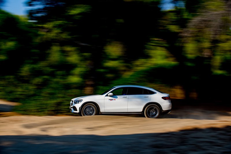 Εκτός δρόμου, επιλέξαμε να κινηθούμε σε αμμώδες έδαφος, η χαλαρή υφή του οποίου θέτει σε δοκιμασία την ικανότητα απόδοσης ενός συστήματος τετρακίνησης. Το ηλεκτρονικά ελεγχόμενο «4MATIC» ανταποκρίθηκε με ικανοποιητικό τρόπο και η πρόσβασή μας εμποδίστηκε μόνον όταν εκουσίως θελήσαμε να ξεπεράσουμε την ικανότητα πρόσφυσης των ελαστικών δρόμου που διέθετε. Εντός δρόμου, η GLC-Class Coupé 300d κινείται με άνεση ανεξαρτήτως ρυθμού. Είτε εντός πόλης είτε ως ένα Grand Tourer (σημ.: σε αυτή την έκδοσή της μπορεί να προσδιοριστεί τέτοιο για να μακρινές αποστάσεις), μεταφέρει οδηγό και επιβάτες χωρίς πρόβλημα.