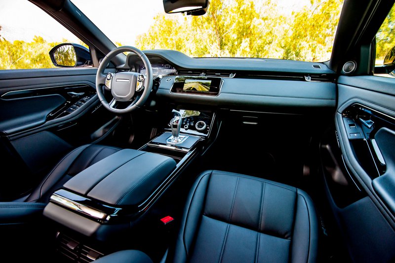 Η τεχνοκρατική εικόνα είναι ισχυρή στο εσωτερικό του οχήματος και, κατά κάποιον τρόπο, ενισχύει τον αέρα πολυτέλειας που αποπνέει ένα αυτοκίνητο που φέρει το σήμα της Range Rover. Οι δύο μεγάλες έγχρωμες οθόνες αφής στο κέντρο του ταμπλώ και την κονσόλα («Touch Pro Duo») και η δυνατότητα να πραγματοποιείται μέσω αυτών η πλειονότητα των επιμέρους λειτουργιών, κάνει το καινούργιο Evoque να είναι κορυφαίο αναφορικά με τη νεωτεριστική εικόνα που παρέχει σε επιβάτες και τον ξεχωριστό χαρακτήρα του. Το κάθισμα του οδηγού είναι σχετικά ψηλά τοποθετημένο, η εργονομία καλή και οι θήκες για μικροαντικείμενα ικανοποιητικές.