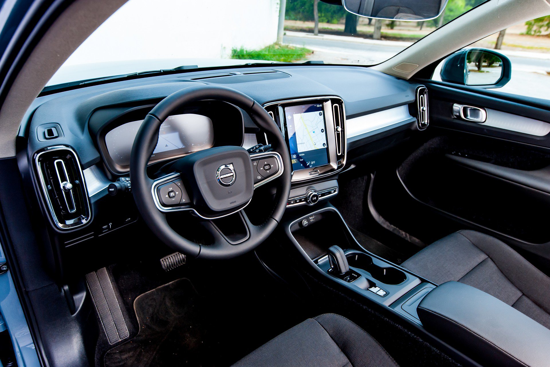 Στο μήκους 4,425 μέτρων αμάξωμα, χτισμένο στην πλατφόρμα Compact Modular Architecture (CMA), έχει χωρέσει ένα μεταξόνιο στα 2,7 μέτρα. Το σαλόνι είναι θαυμάσιο σε αισθητική, σίγουρα Volvo αν και έχουν γίνει κάποιες απλοποιήσεις σε υλικά και μοτίβα, προκειμένου να διατηρείται το μοντέλο βασικό και προσιτό. Δεν υπάρχουν σπουδαίες ενστάσεις σε αυτό. Υπάρχει ηλεκτρικό χειρόφρενο, αλλά όχι paddles στο τιμόνι για αλλαγές ταχυτήτων με το 8άρι αυτόματο κιβώτιο, υπάρχει και η κεντρική οθόνη αφής για τη διαχείριση των συστημάτων με μια κάποια δυσχέρεια σε εργονομικά ζητήματα, όπως μια κάποια δυσχέρεια υπάρχει και στην ορατότητα προς τα πίσω.