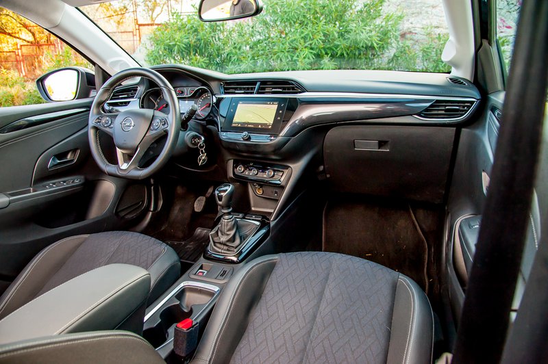 Αυτό, φυσικά, δεν του στερεί αποτελεσματικότητα. Τουναντίον, το εσωτερικό του Opel Corsa δεν επιβάλλει τους χωροταξικούς συμβιβασμούς τους οποίους καλείσαι να διαχειριστείς στην περίπτωση του μικρού Peugeot. Η ποιότητα των υλικών διατηρείται σε γνώριμα για μια γερμανική πρόταση επίπεδα, με το πλαστικό που καλύπτει την επιφάνεια του ταμπλώ να διαθέτει τα ποιοτικά χαρακτηριστικά μικρομεσαίου hatchback.