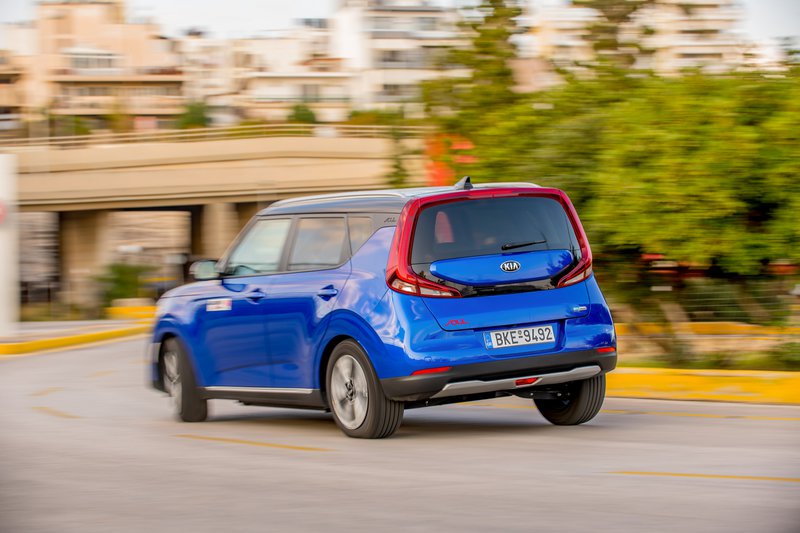 Απόλυτα άνετα θα αισθανθεί και ο οδηγός τού Kia e-Soul. Εδώ, όμως, το feedback που εισπράττει από το αυτοκίνητό του είναι ελαφρώς πιο αδιάφορο. Ναι μεν στρίβει, φρενάρει και απορροφά με μεγάλη επιτυχία τις κακοτεχνίες της ασφάλτου, υπολείπεται, όμως, ελαφρά του Mazda σε ποιότητα κύλισης. Ακολούθως, και εδώ υπάρχουν paddles πίσω από το τιμόνι ώστε να ρυθμίζεται ο βαθμός ανάκτησης, ενώ ο οδηγός έχει στη διάθεσή του και τέσσερα modes, Eco , Eco, Comfort και Sport, για περαιτέρω παραμετροποίηση του οχήματος. Τώρα σε ό,τι αφορά στην κίνηση στην πόλη, παρά το αυξημένο του πλάτος, αποδεικνύεται αισθητά πιο ευέλικτο και εύκολο στον έλεγχο των ορίων του.
