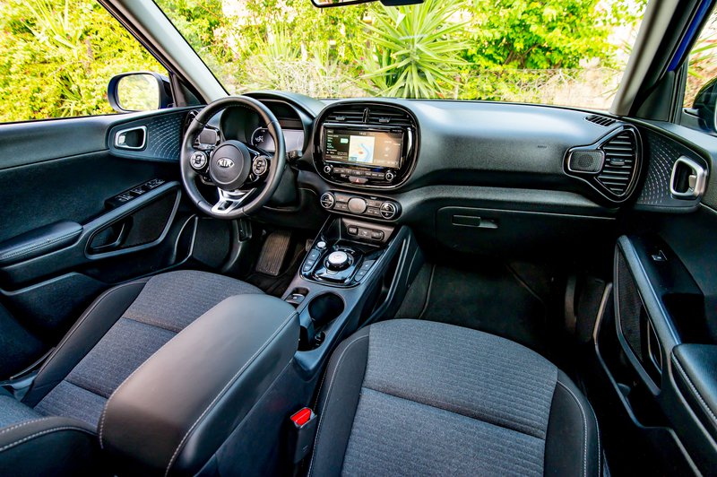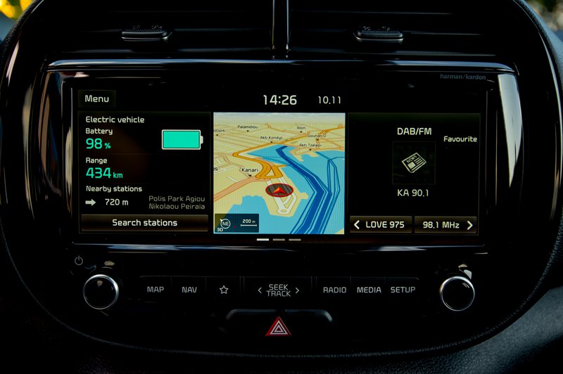 Στον αντίποδα, η πρόταση της Kia δείχνει σε μειονεκτική θέση, παρότι δεν το αξίζει. Και εδώ τα χρησιμοποιούμενα υλικά είναι σε γενικές γραμμές καλά, το τεχνολογικό υπόβαθρο υπερπλήρες και το εσωτερικό του διαθέτει και αυτό αρκετές, φρέσκιες, σχεδιαστικές πινελιές. Από μόνο του δείχνει μια χαρά, σε αντιπαραβολή, όμως, με αυτό του MX-30, δεν έχει καμία τύχη. Οπτικά τουλάχιστον, αφού περνώντας χρόνο με αυτό, αρχίζεις να ανακαλύπτεις ότι μπορεί εντέλει να σου προσφέρει μία καλύτερη εμπειρία χρήσης στην καθημερινότητα. Ναι, ενώ εκ πρώτης όψεως φαντάζει σαν φτωχός συγγενής, το δυνατό του σημείο έχει να κάνει με τις απείρως πιο πρακτικές θήκες για μικροαντικείμενα, με τη γενικότερη εργονομία και με τη μεγαλύτερη οθόνη 10,25 ιντσών του infotainment. Η τελευταία, μάλιστα, είναι αφής -όπως στην συντριπτική πλειοψηφία των σύγχρονων αυτοκινήτων- και δεν χρειάζεται να σε ταλαιπωρεί με κάποιο κομψό αλλά δύστροπο χειριστήριο.