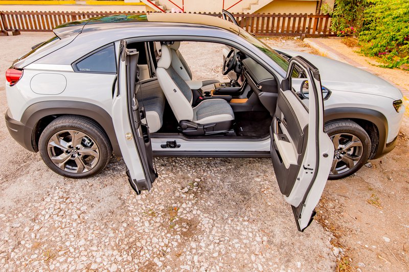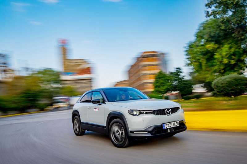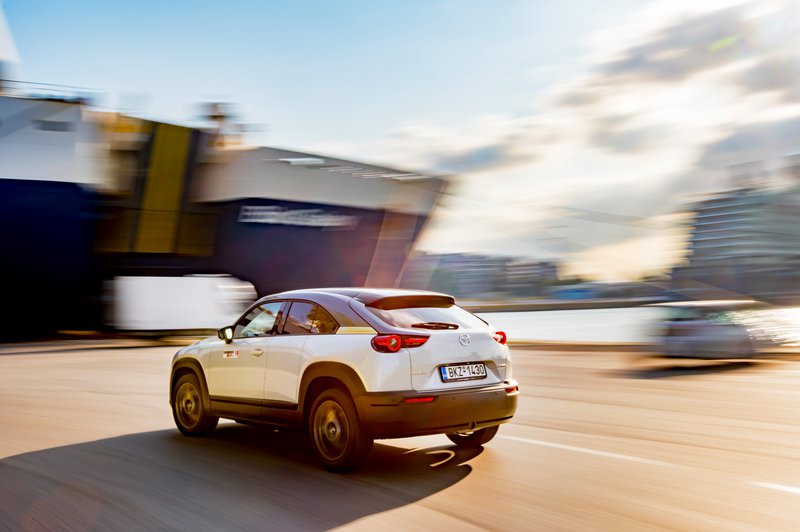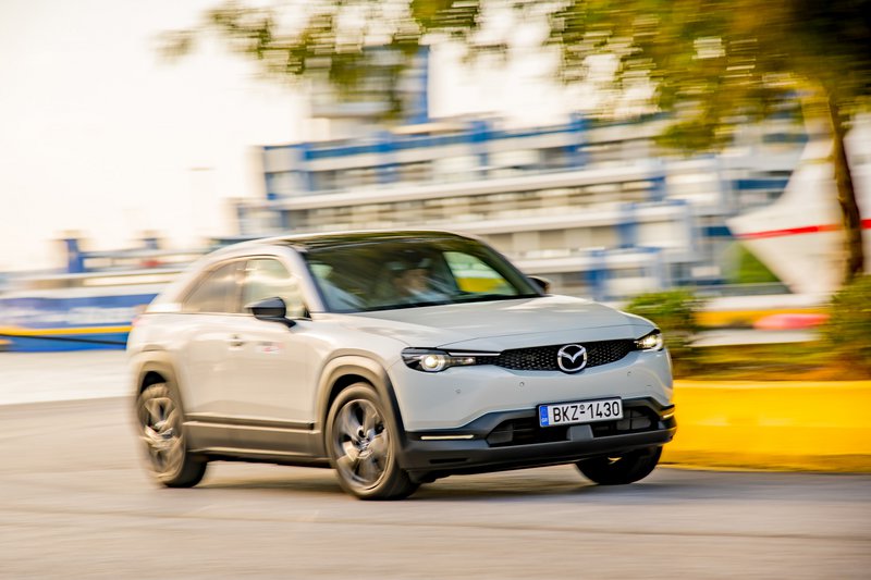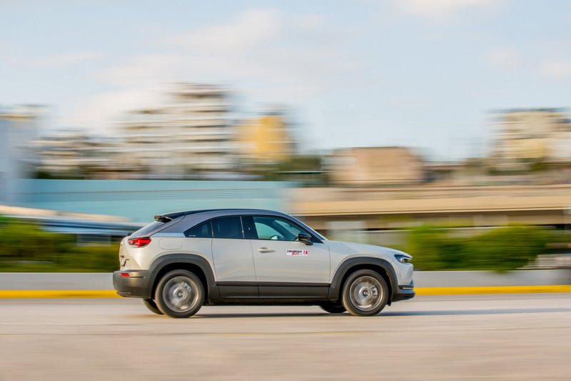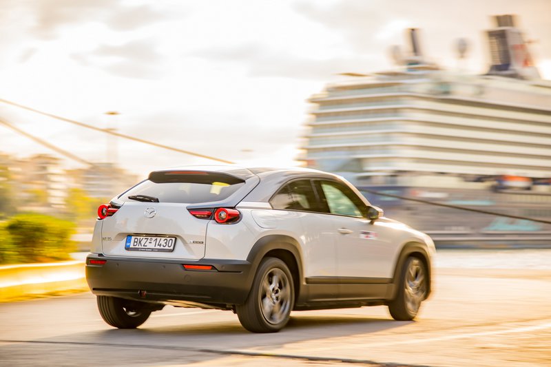 Κάπως έτσι φτάνουμε στο διά ταύτα, στην εμπειρία που προσφέρουν τα δύο αυτά μοντέλα στον δρόμο. Ξεκινώντας από το MX-30, θα πούμε ότι είναι ένα αυτοκίνητο που χαίρεσαι να οδηγείς. Από τα πρώτα κιόλας χιλιόμετρα καταλαβαίνεις ότι πρόκειται για ένα δεμένο σύνολο, με καλορυθμισμένες αναρτήσεις, που προσφέρει υψηλή ποιότητα κύλισης και μπορεί εύκολα να υποστηρίξει έναν πιο σβέλτο ρυθμό, όποτε ο οδηγός το επιλέξει. Η απόκριση του δεξιού πεντάλ είναι πραγματικά ακαριαία. Ωστόσο, οι μόλις 145 ίπποι του ηλεκτροκινητήρα δεν πρόκειται να βάλουν φωτιά στην άσφαλτο. Εντός αστικού ιστού θα χαρίσουν καλές επιταχύνσεις. Στον ανοικτό δρόμο, πάλι, η τελική του περιορίζεται στα 140 km/h. Ο συνδυασμός θέση οδήγησης / αίσθηση τιμονιού θα ικανοποιήσει και τους πλέον απαιτητικούς. Ο οδηγός, μάλιστα, έχει στη διάθεσή του και paddles στο τιμόνι, που προφανώς δεν αλλάζουν ταχύτητες, αλλά μεταβάλλουν τον βαθμό ανάκτησης της κινητικής ενέργειας. Η λειτουργία τους είναι πολύ ομαλή και επιτρέπει σε ικανοποιητικό βαθμό να επιβραδύνεις τα 1.720 κιλά του οχήματος, αφήνοντας απλώς το πόδι από το γκάζι.