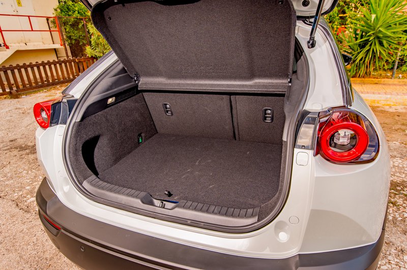Οι μηχανικοί και εξελικτές της Mazda έχουν δημιουργήσει ένα μοντέλο-κόσμημα, ταυτόχρονα, όμως, άφησαν εκτεθειμένη μία μεγάλη αχίλλειο πτέρνα. Το πρώτο τους ηλεκτρικό αυτοκίνητο συνοδεύεται αποκλειστικά από έναν κινητήρα και ένα μέγεθος συσσωρευτή, μόλις 35,5 kWh. Οι ίδιοι δικαιολογούν αυτή την απόφαση λέγοντας ότι η μέση απόσταση που κάνει ένας Ευρωπαίος χρήστης είναι μόλις 48 km/ημέρα, ενώ και οι πιο μεγάλοι συσσωρευτές επιβαρύνουν το περιβάλλον, λόγω αυξημένης χρήσης σε βαρέα μέταλλα. Σεβαστό μεν, αλλά το αποτέλεσμα είναι πως το MX-30 προσφέρει αυτονομία 200 km – αρκετά ρεαλιστική, με βάση και τις δικές μας μετρήσεις, αλλά, ταυτόχρονα, και οριακή, αν δεν έχεις μόνιμα ένα δεύτερο όχημα καβάτζα.