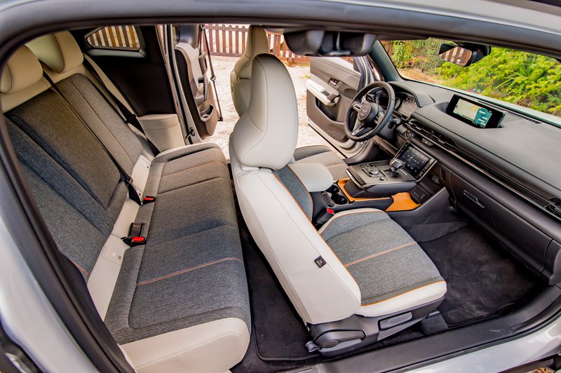 Τέλος, έρχονται να προσθέσουν ένα demi-ψηφιακό πίνακα οργάνων, μία wide οθόνη 8,8 ιντσών για το infotainment και μία δεύτερη οθόνη 7 ιντσών για τον κλιματισμό. Έτσι, λοιπόν, καθισμένος σε ένα ηλεκτρικά ρυθμιζόμενο και αρκετά αναπαυτικό κάθισμα, ο οδηγός δύσκολα θα ζητήσει κάτι παραπάνω. Η premium αίσθηση που αναδύει το ηλεκτρικό μοντέλο της Mazda γρήγορα οδηγεί στη λογική του shut up and take my money!