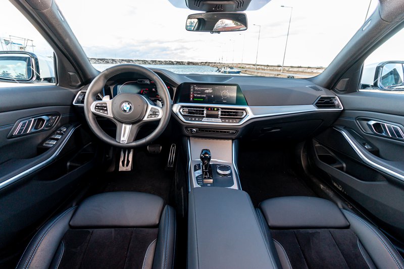 Από εκεί και πέρα, όλο το υπόλοιπο αυτοκίνητο αποτελεί την επιτομή και την κορύφωση όλων όσων πρεσβεύει η σειρά 3 εδώ και 4,5 δεκαετίες. Η πρόσφατη γενιά της είναι ίσως η πιο προσεγμένη και πιο βαθιά δουλεμένη από τους μηχανικούς, χάρη στο εξαιρετικής στιβαρότητας πλαίσιο CLAR, την χρήση ελαφρών υλικών ώστε να κρατηθεί το βάρος σχετικά χαμηλά (55 κιλά λιγότερα από την προηγούμενη) αλλά και την μεγάλη προσοχή που έχει δοθεί στο σετάρισμα των αναρτήσεων που στο αυτοκίνητο της δοκιμής μας ήταν μία ηλεκτρονικά ρυθμιζόμενη με την σφραγίδα της M Sport. Πολύ ισορροπημένη ως σχέδιο, αρκετά αεροδυναμική και χωρίς τις αισθητικές ακροβασίες της νέας 4άρας, η 3άρα έχει μεγαλώσει σε όλες τις της διαστάσεις, και δη στο μεταξόνιο, κάτι που έχει όπως είναι αναμενόμενο αντίκτυπο και στους χώρους για επιβάτες και αποσκευές.