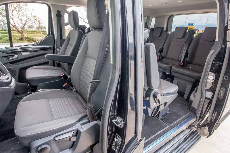 Αυτά με τα τεχνικά. Κατά τα λοιπά, έχουμε ένα όμορφο στην όψη αλλά μάλλον άχαρο σχεδιαστικά (λόγω χαρακτήρα) αμάξωμα που μπορεί να φιλοξενήσει μέχρι οκτώ επιβάτες και με αντικριστές τις δύο πίσω σειρές καθισμάτων. Ο στάνταρ εξοπλισμός περιλαμβάνει πλειάδα συστημάτων ασφάλειας, το σύστημα infotainment SYNC 3 της Ford με φωνητικό έλεγχο με έγχρωμη οθόνη αφής 8 ιντσών και μόντεμ FordPass Connect που παρέχει Wi-Fi για έως και 10 συσκευές. Ακόμα πιο βολικό είναι το app FordPass για πρόσβαση μέσω του smartphone σε λειτουργίες, όπως η κατάσταση του οχήματος, ο εντοπισμός του αυτοκινήτου και το εξ αποστάσεως κλείδωμα και ξεκλείδωμα.