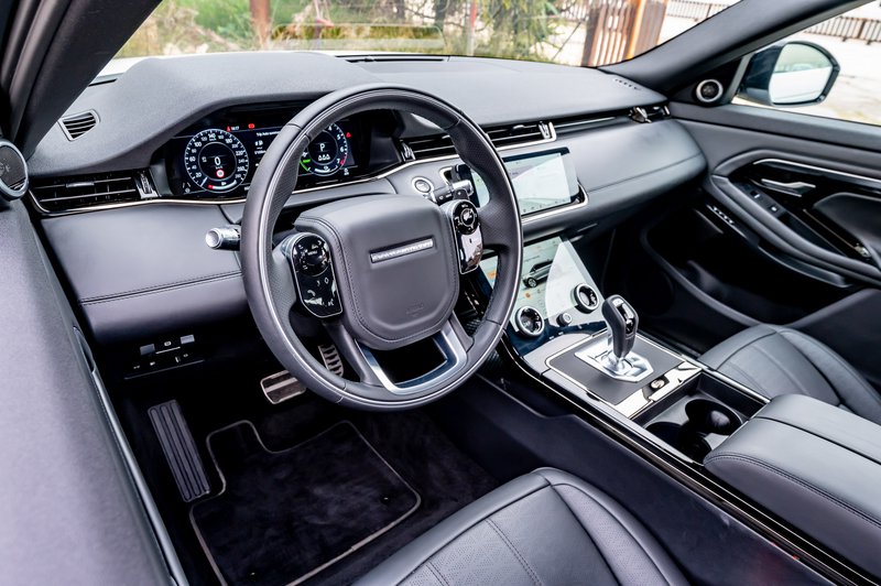 Το εσωτερικό του Evoque είναι πράγματι εντυπωσιακό και αυτό περισσότερο χάρη στις δύο ψηφιακές οθόνες για τον πίνακα των οργάνων και του συστήματος infotainment, ακολουθώντας πιστά τα γερμανικά digitalized πρότυπα , όχι όμως και στο φινίρισμα, αλλά και σε κάποια υλικά που έχουν επιλεγεί από το ταμπλό και κάτω, ενώ ακόμη μια παρατήρηση έχει να κάνει με τη αργή απόκριση της touch κεντρικής οθόνης.
