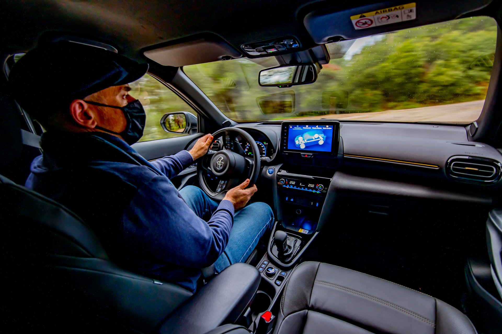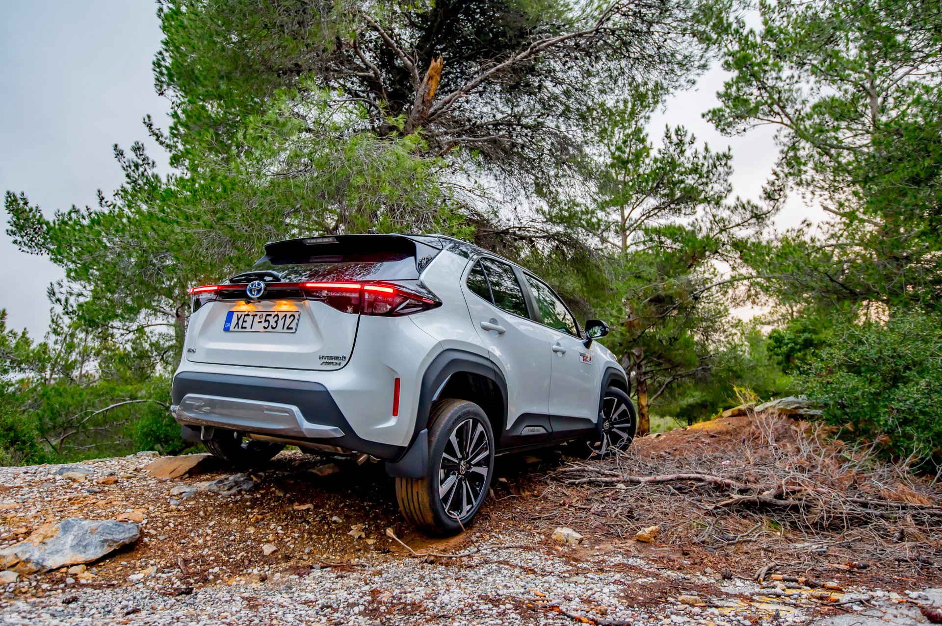 Μπορεί να νιώσεις κάποιες ξερές αντιδράσεις λόγω 18άρας ζάντας, αλλά ποτέ δεν φαίνεται να καταπονείται το άριστο πάτωμα επάνω στο οποίο το νέο Yaris Cross έχει δομηθεί. Με δε γωνίες εισόδους, διαφυγής και ράμπας στις 20, 35 και 19 μοίρες, αντίστοιχα, δεν έχεις σίγουρα ένα Jimny, αλλά το να αναφέρεις και μόνο στην κατηγορία τέτοια μεγέθη σημαίνει ότι δεν φοβάσαι να λασπωθείς. Σε εκτός δρόμου διαδρομές, όντως, η προς τα εμπρός εποπτεία είναι εξαιρετική (προς τα πίσω υπάρχει η βοήθεια της κάμερας οπισθοπορείας) και η εμπλοκή της τετρακίνησης είναι υπαρκτή και δυνατή, έτοιμη να βοηθήσει για το αρκετά παραπέρα από την άσφαλτο που μπορεί να γίνει πολύ πιο…παραπέρα αν επιλέξετε ελαστικά M S. Όσο για την καθημερινότητα και το σταμάτα-ξεκίνα; Εκεί φαίνεται το αυτοκίνητο να είναι πραγματικά σε άλλη Λίγκα, καθώς η ηλεκτροκίνηση γίνεται το κυρίαρχο mode κίνησης, όπως ακριβώς υπόσχεται η Toyota, με μια μέση κατανάλωση στα 5,6 L/100 km να φιγουράρει πολύ εντυπωσιακά.