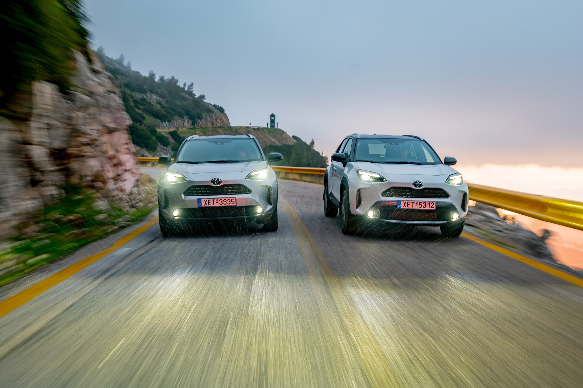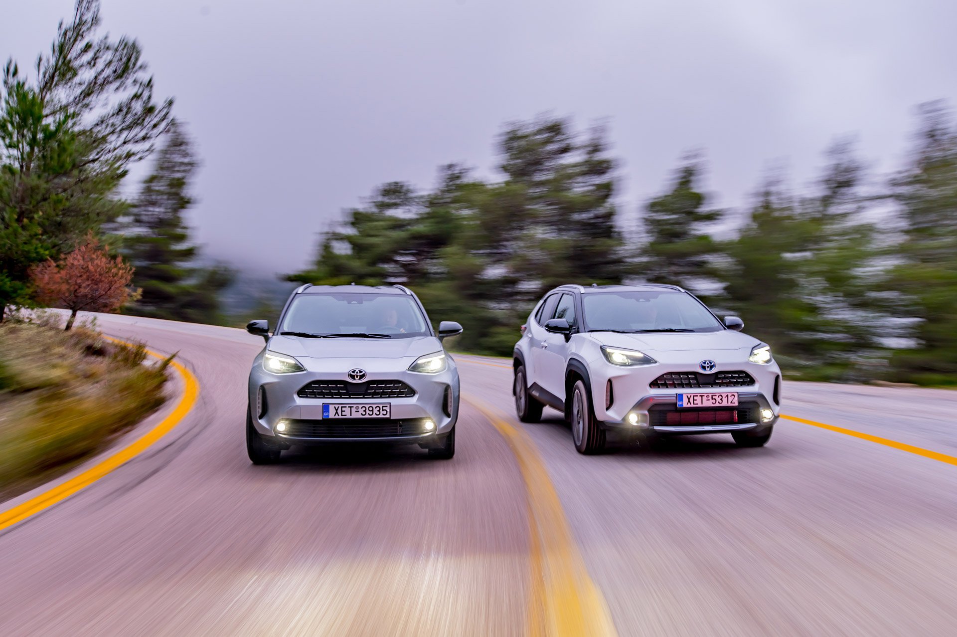 Αλλά αυτήν τη φορά κομίζει τη φιλοσοφία «Big-Small» που μεγιστοποιεί τον εσωτερικό χώρο και την πρακτικότητα, την πολύ επιτυχημένη υβριδική τεχνολογία τέταρτης γενιάς, το Toyota Safety Sense δεύτερης γενιάς και –ίσως πιο απρόσμενα από όλα- έναν γνήσιο χαρακτήρα Fun to Drive, όπως ήδη γνωρίζουμε από το Car of the Year 2021, Yaris hatchback. Και για μία ακόμα φορά να υπενθυμίσουμε ότι το Yaris Cross δεν είναι ένα crossover Yaris, αλλά ένα κανονικό SUV που διατίθεται με συμβατικό βενζινοκινητήρα ως προσθιοκίνητο με μηχανικό ή CVT κιβώτιο και πλήρως υβριδικό ως προσθιοκίνητο, αλλά και –πράγμα σπάνιο για την κατηγορία- ως τετρακίνητο. Ας δούμε τα κοινά και τις διαφορές που έχουν τα δύο Yaris Cross που δεν είναι και λίγες!