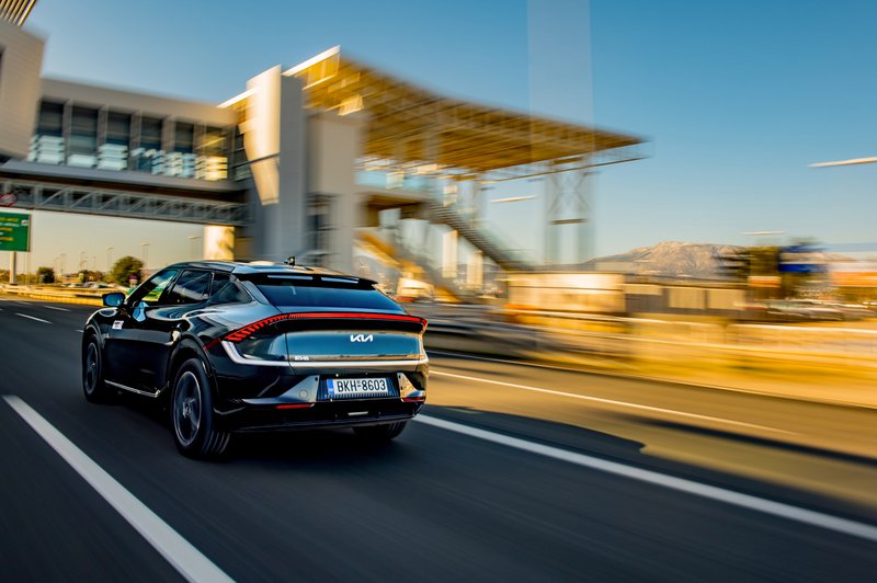 Δεν θα κρύψουμε πως το EV6 είναι από τα πιο ευχάριστα ηλεκτρικά αυτοκίνητα που έχουμε οδηγήσει και είναι εντυπωσιακό το πώς οι Κορεάτες κατάφεραν να βάλουν την οδηγική απόλαυση σε προτεραιότητα και να αποφύγουν την αποστειρωμένη αίσθηση των ανταγωνιστών τους. Είναι εντυπωσιακή η σταθερότητα του αυτοκινήτου στον αυτοκινητόδρομο, ο τρόπος που κυλάει στους τροχούς του και η αεροδυναμική του. Επίσης, η ικανότητά του να κρύβει το βάρος του, αλλά και το μέγεθός του σε αστικό περιβάλλον. Πάνω από το ανάγλυφο των ελληνικών δρόμων περνάει ως ένα «ενιαίο τμήμα», αξιοποιώντας τον σούπερ άκαμπτο αμάξωμα με το άψογο ζύγισμα, στοιχεία που θα εκτιμηθούν σε έναν επαρχιακό δρόμο. Η ύπαρξη πληθώρας ηλεκτρονικών, δεν επιτρέπει την παραμικρή απώλεια πρόσφυσης, ωστόσο όταν ο οδηγός πιέσει, το EV6 θα αντιδράσει προοδευτικά, χωρίς να προβληματίσει, εμπνέοντας πάντα το αίσθημα της ασφάλειας.