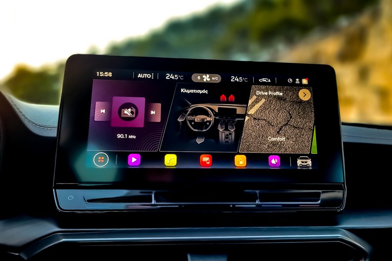 Όμορφα, ποιοτικά υλικά, μπόλικη ψηφιακή τεχνολογία με ψηφιακές οθόνες για πίνακα οργάνων και πολυμέσα, με πάρα πολλή πληροφορία δοσμένη όλη σε ελληνικά συνθέτουν το εσωτερικό. Αλλά, από την άλλη, η προσέγγιση της Volkswagen έχει κτυπήσει και την Cupra. Αυτό σημαίνει ότι απουσιάζουν κρίσιμοι διακόπτες (σε σπορ υλοποιήσεις οι φυσικοί διακόπτες είναι εκ των ουκ άνευ) και όλα ορίζονται διά των οθονών ή της αφής. Υπάρχει και ψηφιακή βοηθός που ακούσει στο «Όλα» (γεια, στα ισπανικά), οπότε πρέπει να προσέχετε τις εκφράσεις σας και την επικοινωνία σας, μιας και συχνά, πυκνά έρχεται απρόσκλητη η φωνή στην καμπίνα με την απορία «Πώς μπορώ να βοηθήσω;».