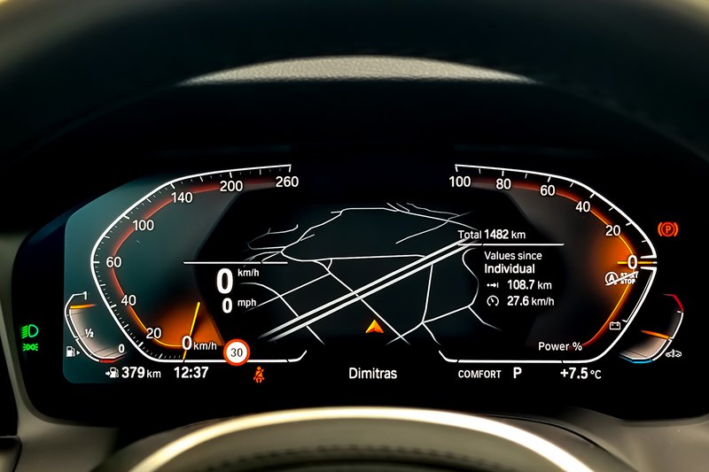 Υπάρχει έντονη αίσθηση premium κατασκευής, με μοναδική εξαίρεση τα πλαστικά στις πόρτες που είναι σκληρά. Οι δερμάτινες επενδύσεις είναι εξαιρετικές, η συναρμογή επίσης, ενώ την παράσταση κλέβει το προαιρετικό BMW LiveCockpit Professional με πλήρως ψηφιακό πίνακα οργάνων 12,3 ιντσών και οθόνη πολυμέσων 10,25 ιντσών. Τα γραφικά είναι άριστα, ενώ παρά το μεγάλο πλήθος πληροφοριών, η χρήση είναι πολύ εύκολη και ευχάριστη στην πράξη. Οι όμορφες λεπτομέρειες δεν λείπουν, όπως, για παράδειγμα, οι τρεις λωρίδες στα χρώματα της Μ, δίπλα στις χειρολαβές των θυρών. Σου υπογραμμίζει έτσι με κάθε ευκαιρία ότι σχεδιάστηκε από ανθρώπους με μεράκι και αγάπη πάνω σε αυτό που κάνουν, δημιουργώντας ακόμα μεγαλύτερη περιέργεια να την οδηγήσεις!