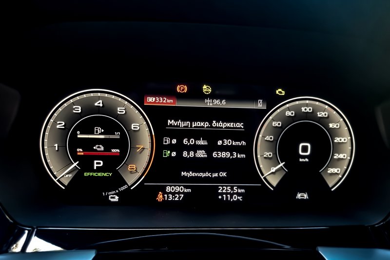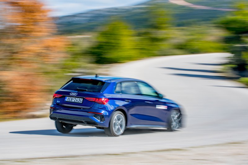 Το A3 μπορεί να κινηθεί αμιγώς ηλεκτρικά με ταχύτητα μέχρι 140 km/h και για μια μέγιστη απόσταση 67 χιλιομέτρων και φορτίζει την μπαταρία λιθίου χωρητικότητας 13 kWh (κλέβει από τον χώρο αποσκευών) σε κάτι περισσότερο από 4 ώρες με φόρτιση στα 2,9 kW. Υπάρχει, τέλος, παλέτα προγραμμάτων παραμετροποίησης της απόδοσης του κινητήρα και του κιβωτίου, αλλά και επιλογές χρήσης ρεύματος, διατήρησής του για αμιγώς ηλεκτρική κίνηση ή παραγωγή ενέργειας μέσω της χρήσης του βενζινοκινητήρα (με μια σχετική επιβάρυνση στην κατανάλωση περίπου στα 1,5 L/100 km).