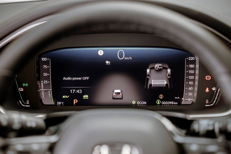 Στις οικονομικά προσιτότερες εκδόσεις του Civic e:HEV υπάρχει οθόνη αφής 7,0 ιντσών. Στις καλύτερα εξοπλισμένες αυτή είναι 10,25 ιντσών, ενώ υπάρχει έγχρωμη οθόνη και στη θέση του πίνακα οργάνων. Το καινούργιο μοντέλο της Honda διαθέτει την αναβαθμισμένη έκδοση του συστήματος «Sensing» η οποία περιλαμβάνει περισσότερα στοιχεία ασφάλειας και προειδοποίησης του οδηγού σε συγκριτικά με πριν.