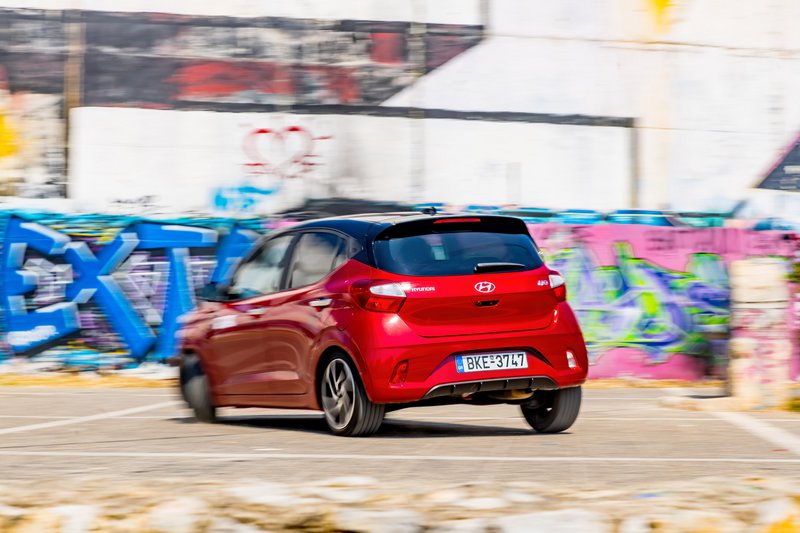 Κι ενώ η σπορ εικόνα του Picanto GT Line σε κάνει να γκρινιάζεις γι’ αυτό, εδώ στο Hyundai i10 δεν έχεις καμία σπορτίβικη απαίτηση. Συνολικά, η αίσθηση είναι ότι οδηγείς σαφώς ένα μεγαλύτερο αυτοκίνητο από ό,τι είναι στην πραγματικότητα, ενώ και η ποιότητα κύλισης είναι ανάλογα μεγαλίστικη.