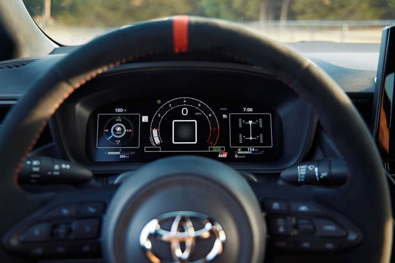 Με τον τρικύλινδρο στο μέγιστο γρύλισμά του και το τούρμπο να κελαηδάει και να σφυρίζει σε κάθε ανέβασμα, η κόκκινη γραμμή των 7.000 rpm έρχεται γρήγορα. Αν και είναι νωρίς, υπάρχει η εκτίμηση για μια επίδοση γύρω στα 4,5 sec για τα πρώτα 100 km/h από στάση, κάτι που βάζει την GR Corolla στο κυνήγι των κορυφαίων sport συμπαγών μοντέλων.
