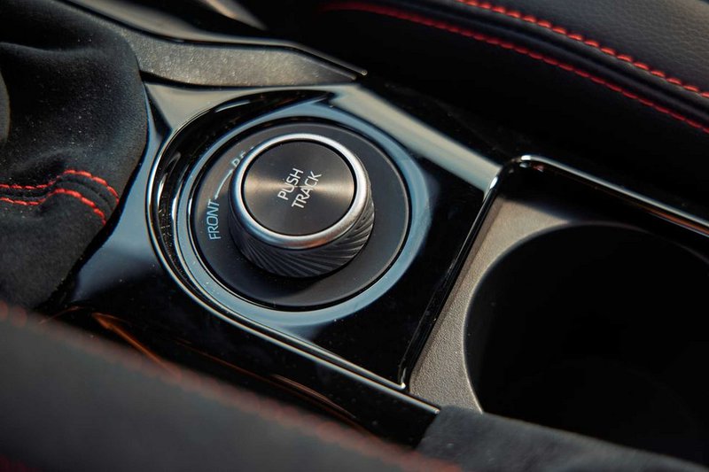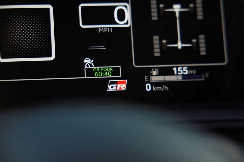Αλλά αυτό το αυτοκίνητο κάνει κάτι περισσότερο από το να παράγει ταχύτητα — προτρέπει τον πιλότο του να το ενορχηστρώσει. Το στάνταρ σύστημα τετρακίνησης GR-Four μπορεί να διαφοροποιήσει την κατανομή της ροπής εμπρός/πίσω από 60/40 σε 30/70 τοις εκατό με εντολή του οδηγού, αν και η κατανομή 50/50 της λειτουργίας Track είναι η προτιμώμενη ρύθμιση για ιδανική ισορροπία. Εμπρός και πίσω διαφορικά περιορισμένης ολίσθησης Torsen —προαιρετικά στο βασικό μοντέλο Core, στάνταρ στις κορυφαίες εκδόσεις—ενισχύουν περαιτέρω την πρόσφυση, η οποία σε κλειστές καμπές είναι αμείωτη. Σε συνδυασμό με το άμεσο σύστημα διεύθυνσης, το ενισχυμένο πάτωμα και το ελαφρύ αμάξωμα, η GR Corolla προσφέρει απόλυτα σίγουρο πάτημα, αλλά και εξαιρετική ικανότητα να παίξεις με τα γόνατα εμπρός και τους πολλαπλούς συνδέσμους πίσω.