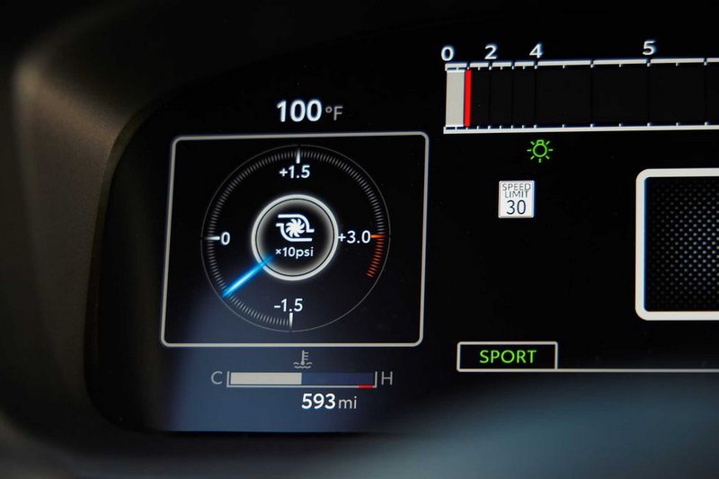 Η διαμορφώσιμη οθόνη 12,3 ‘’, που εκτελεί χρέη πίνακα οργάνων, αποφεύγει τα τρελά κινούμενα γραφικά για εύκολη ανάγνωση, με την ένδειξη επιλογής ταχυτήτων να βρίσκεται στο επίκεντρο. Τα πεντάλ απέχουν λίγο μεταξύ τους για εύκολο «μύτη-τακούνι», αλλά η λειτουργία rev matching (η οποία μπορεί να απενεργοποιηθεί) λειτουργεί καλύτερα από ό,τι τα περισσότερα αθλητικά παπούτσια της Nike.