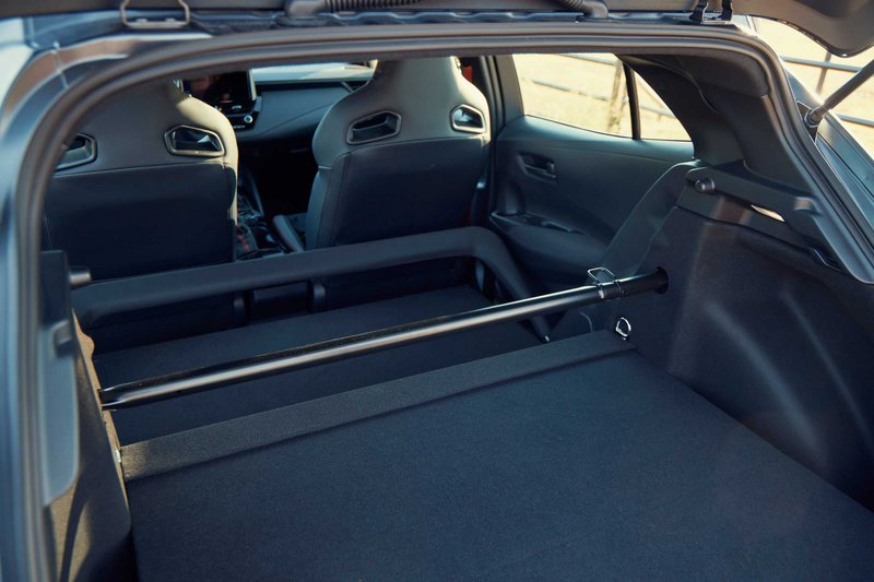 Σκαρφαλώστε τώρα στο σκληρό, γραμμικό σε λειτουργία πεντάλ του φρένου και τετραπίστονες εμπρός και διπίστονες πίσω δαγκάνες δείχνουν να ματσάρουν τέλεια με την ορμή του turbo. Όπως τα καλύτερα hot hatch, η GR Corolla μπορεί, επίσης, να είναι ευχάριστα πολιτισμένη —εξάλλου εξακολουθεί να είναι Corolla– και διατηρεί μεγάλο μέρος της πρακτικότητας και των χαρακτηριστικών του μοντέλου, συμπεριλαμβανομένου του προσαρμοζόμενου cruise control. Η σκληρή ρύθμιση της ανάρτησης δεν τιμωρεί πολύ τη σπονδυλική στήλη σας, εν μέρει χάρη στα παχιά πλαϊνά των Michelin Pilot Sport 4 διαστάσεων 235/40R-18 (η έκδοση Morizo εξοπλίζεται με Cup 2 πλάτους 245). Λάβετε υπόψη και ένα ελαφρύ, εύκολα διαχειρίσιμο πεντάλ συμπλέκτη και μια συγκρατημένη ποσότητα από εκρήξεις και σκασίματα από τις απολήξεις της εξάτμισης, και δεν φάνηκαν σημάδια κόπωσης στο κορμί μας μετά από ώρες οδήγησης της έκδοσης Morizo.