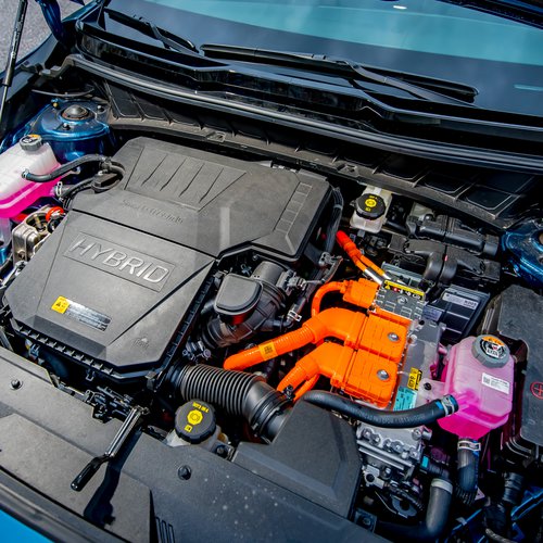 Στο εμπρός μέρος έχουμε έναν τετρακύλινδρο ατμοσφαιρικό βενζινοκινητήρα 1.6 GDI με τεχνολογίες… εύρυθμης λειτουργίας, όπως ρουλεμάν χαμηλής τριβής και ισχύ 105 PS και έναν σύγχρονο ηλεκτροκινητήρα μόνιμου μαγνήτη 43,5 ίππων με συνδυαστική ισχύ 141 PS και ροπή 265 ολόκληρα Nm από τις 1.000 μέχρι τις 2.400 rpm. Η κίνηση πηγαίνει στους εμπρός τροχούς μέσω κιβωτίου διπλού συμπλέκτη 6 σχέσεων, 2ης γενιάς (με βελτιστοποιημένες σχέσεις και αφαίρεση της όπισθεν που εξοικονομεί 2,3 kg βάρους) και μειώνει την κατανάλωση κατά 0,62% (πάσα προσφορά δεκτή). Αξιοσημείωτο είναι, λοιπόν, ότι η οπισθοπορεία –ελλείψει κλασικής όπισθεν- γίνεται μέσω του ηλεκτροκινητήρα.