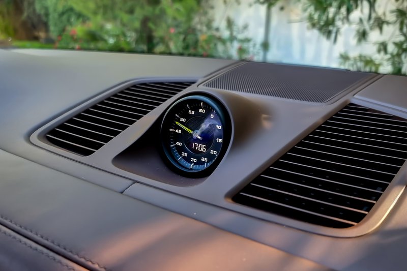 Η σχεδίαση είναι σύννομη με την οικογενειακή φιλοσοφία της Porsche. Η κεντρική κονσόλα είναι περιτριγυρισμένη από μπουτόν αφής. Θα θέλαμε, ωστόσο, τα μπουτόν που αφορούν στη ρύθμιση της θερμοκρασίας του συνεπιβάτη να είναι μέσα στο οπτικό πεδίου του οδηγού. Στο πάνω μέρος της κεντρικής κονσόλας ξεχωρίζει η εξαιρετικής ευκρίνειας οθόνη πολυμέσων των 12 ‘’, ενώ για εμάς το highlight είναι ο πίνακας οργάνων. Με σαφείς αναφορές στην 911, αποτελεί ένα έργο τέχνης. Στο κέντρο ξεχωρίζει το αναλογικό στροφόμετρο με ενδείξεις έως τις 8000 rpm.