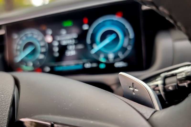 Η ίδια ένδειξη μένει μονίμως αναμμένη στην περίπτωση της επιλογής της 100% ηλεκτροκίνησης (EV). Σημειώνουμε, επίσης, ότι η κίνηση αποκλειστικά με τον ηλεκτροκινητήρα – και, μάλιστα, με ταχύτητες άνω των 100 km/h –είναι εξαιρετικά ευχάριστη στην καθημερινή οδήγηση πλησιάζοντας την αίσθηση ενός ηλεκτρικού αυτοκινήτου– τουλάχιστον με μισό γκάζι, γιατί, βεβαίως, αν ζητήσεις πλήρη ισχύ, τότε θα πάρει υποχρεωτικά μπρος, αυτόματα, και ο βενζινοκινητήρας.