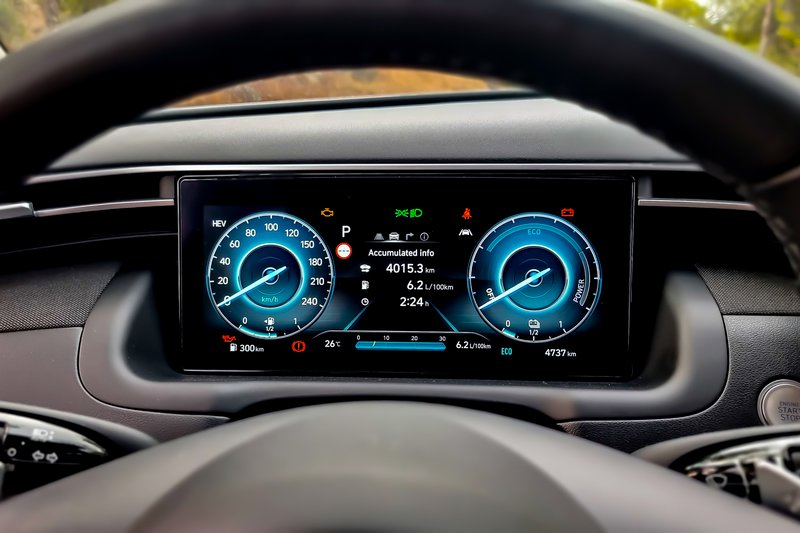 Βεβαίως, ένα plug in hybrid όχημα δεν έχει μόνον αυτή την αποστολή – οφείλει να προσφέρει περιορισμό και της κατανάλωσης και των ρύπων. Στην περίπτωση του υβριδικού Tucson μπορείς να επιλέξεις ποια λειτουργία επιθυμείς, με το διακόπτη EV/HEV. Στην περίπτωση που αφήσεις το αυτοκίνητο να αποφασίζει μόνο του ή αν επιλέξεις υβριδική λειτουργία (HEV), έχεις τη συνεχή διακριτική παρέμβαση/υποβοήθηση του ηλεκτροκινητήρα, που, κατά περίπτωση, κινεί μόνος του το Tucson – με την πράσινη ένδειξη EV στον πίνακα οργάνων να σε ενημερώνει σχετικά.
