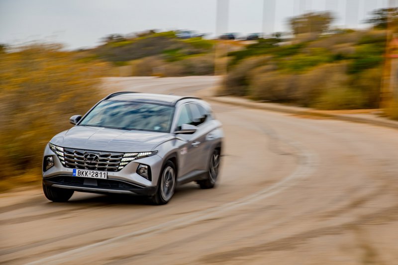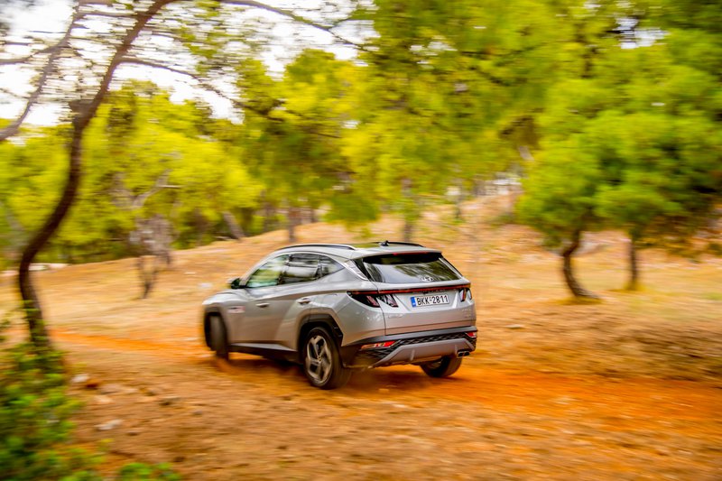 Έτσι, ανεξάρτητα από το επίπεδο φόρτισης της μπαταρίας, που σε κάθε περίπτωση φαίνεται ότι δεν πέφτει κάτω από το 10%, ώστε πάντα να έχει κάποια ηλεκτρική ισχύ ο οδηγός στη διάθεσή του, για ένα γρήγορο προσπέρασμα, η τετρακίνηση είναι δεδομένη – ακόμα και αν η μπαταρία αδειάσει εντελώς. Κάτι που μπορούμε να θεωρήσουμε συγκριτικό πλεονέκτημα, καθώς η πλέον διαδεδομένη αυτή την εποχή επιλογή είναι ο ηλεκτροκινητήρας να τοποθετείται πίσω στον πίσω άξονα για να κινεί τους πίσω τροχούς, αφήνοντας τους εμπρός στον κινητήρα εσωτερικής καύσης. Κατά συνέπεια, ακόμα και αν ο οδηγός επιλέξει την κίνηση μόνο με τον ηλεκτροκινητήρα, το Tucson είναι και πάλι τετρακίνητο –4WD– με ένα ευφυές σύστημα που ανακατανέμει διαρκώς τη ροπή μεταξύ εμπρός και πίσω άξονα. Κάτι που σημαίνει ότι κάποια βασικά χαρακτηριστικά της συμπεριφοράς του αυτοκινήτου παραμένουν αναλλοίωτα.