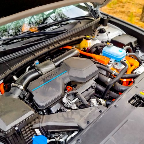 Πριν προχωρήσουμε, χρήσιμο είναι να πούμε ότι το Tucson διαθέτει σύστημα μόνιμης μετάδοσης της κίνησης σε όλους τους τροχούς, με τους δύο κινητήρες του, τον γνωστό mild hybrid 48V βενζινοκινητήρα 1.6 GDi CVVD Turbo και τον μόνιμου μαγνήτη ηλεκτροκινητήρα, που έχει τη μορφή δακτυλίου, να βρίσκονται μπροστά και να αποτελούν μία ενιαία μονάδα μαζί με το εξατάχυτο αυτόματο κιβώτιο, που αυξάνει κατακόρυφα την άνεση διευκολύνοντας το έργο του οδηγού – ιδιαίτερα στις αστικές μετακινήσεις.