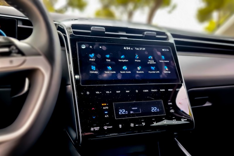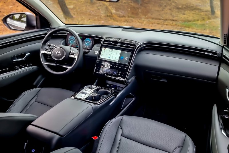 Κατά τ’ άλλα, οδηγός και επιβάτες βρίσκονται σε ένα πραγματικά ευχάριστο και υψηλής ποιότητας περιβάλλον, με άφθονο χώρο για πέντε μεγαλόσωμους ενήλικες (ο χώρος στο πίσω κάθισμα με τις ρυθμιζόμενες σε κλίση πλάτες είναι από τους μεγαλύτερους στην κατηγορία), αρκετές βολικές θέσεις για μικροπράγματα, ενώ νομίζουμε ότι αξίζει μία ιδιαίτερη αναφορά στο σύστημα κλιματισμού, με την όμορφη κατανομή του αέρα, που δεν ενοχλεί κανέναν από τους επιβαίνοντες. Οι δύο ψηφιακές οθόνες, μία για τον οδηγό, που παίζει τον ρόλο του πίνακα οργάνων, και μία δεύτερη μεγάλη κεντρική οθόνη αφής για τον χειρισμό του infotainment και των άλλων συστημάτων του Tucson, σηματοδοτούν, τέλος, την υψηλή τεχνολογία που ενσωματώνει το αυτοκίνητο.