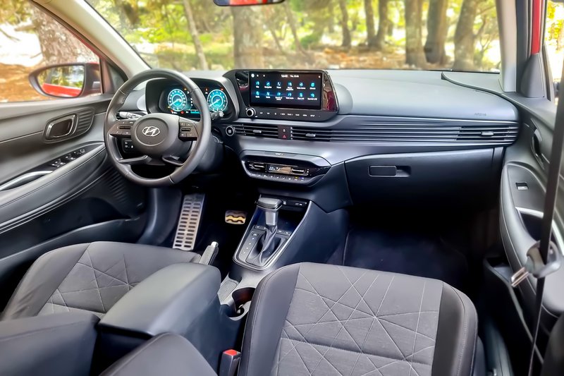 Από την άλλη, το Bayon προσφέρει ακριβώς ό,τι και ένα i20 σε διάκοσμο και επιλογή σκληρών πλαστικών. Είναι σαφώς πιο οδηγοκεντρικό με ένα περιβάλλον πιο εύκολο να ζεις μαζί του ειδικά στη διαχείριση των μενού (που δεν είναι ελληνικά).