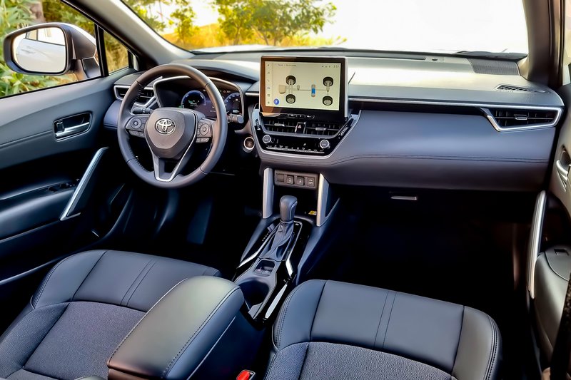 Η νέα Corolla σε όλες τις εκδόσεις περιλαμβάνει, προφανώς, ασύρματο Apple CarPlay και ενσύρματο Android Auto και δωρεάν για τα πρώτα τέσσερα χρόνια αναβαθμίσεις over-the-air, φωνητικό έλεγχο πολυμέσων και πλοήγηση με κίνηση σε πραγματικό χρόνο μέσω cloud. Η έκδοση δοκιμής μας περιλάμβανε, επίσης, 50% ταχύτερο επεξεργαστή και αναβαθμισμένο σύστημα πλοήγησης. Προσθέστε, συγχρόνως, την εφαρμογή για smartphone Toyota MYT App, με την οποία έχετε στο χέρι σας όχι μόνο πληροφορίες, αλλά και δυνατότητα απομακρυσμένου ελέγχου, όπως την εκκίνηση κλιματιστικού εξ αποστάσεως. Αν θέλετε κι άλλα, η Corolla Cross είναι από τα πρώτα μοντέλα που εξοπλίζονται με νέο σύστημα εμπρός κάμερας και ραντάρ με κάλυψη ευρύτερου πεδίου μπροστά από το αυτοκίνητο.