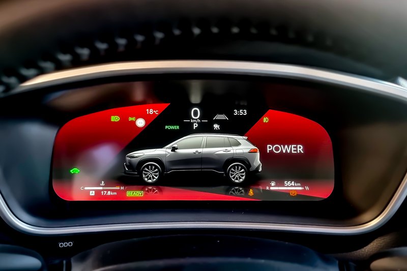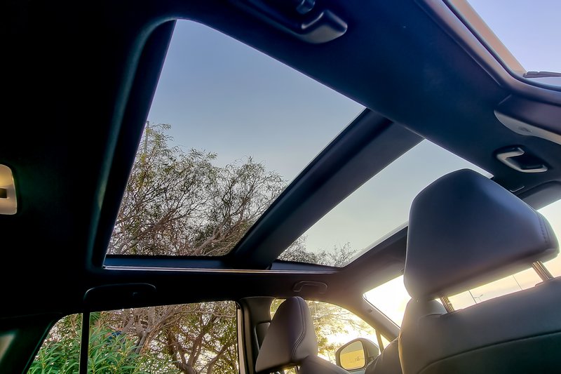Στην καμπίνα του αυτοκινήτου δοκιμής μας με τον πλούσιο εξοπλισμό σε υποδέχεται μια μεγάλη διπλή γυάλινη ηλιοροφή για έξτρα ανοιχτοσύνη στα μάτια των πίσω επιβατών, μεγάλα ανοίγματα και παράθυρα στις πίσω πόρτες (ό,τι λείπει από το C-HR) και ένα πλήρες ψηφιακό περιβάλλον (μέχρι και τα ρυθμιστικά έντασης ήχου είναι μπουτόν).