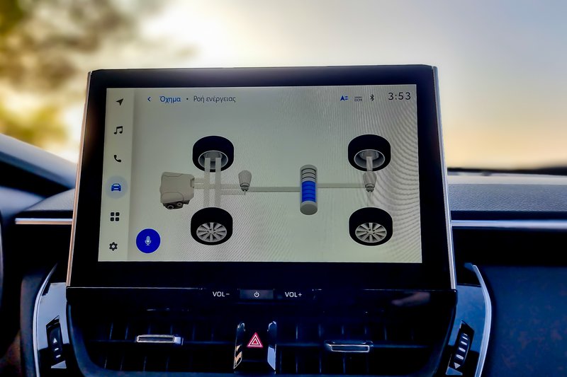 Βέβαια, είναι το «όλον» σαφώς πιο ραφιναρισμένο και πολύ πιο αποδοτικό από το υβριδικό σύστημα 4ης γενιάς, τόσο που εύκολα ζεις χωρίς να χρειάζεται να το σανιδώνεις διαπιστώνοντας ότι η συνέργεια ηλεκτροκινητήρων και βενζινοκινητήρα είναι πολύ επιτυχημένα ομογενοποιημένη. Αν, τέλος πάντων, θέλετε μπρίο, απλώς διαλέξτε το πρόγραμμα Sport ανάμεσα στα τρία διαθέσιμα μαζί με τα Eco και Normal και θα δείτε τα μισά γκάζια να δίνουν έναν εξαιρετικά καλό τόνο κίνησης (0-100 km/h σε 7,5 sec είναι αυτά!). Είναι, όμως, αυτό το ζητούμενο από ένα αυτοκίνητο όπως η Corolla Cross; Μάλλον όχι. Επιλέξαμε διάφορα οδηγικά σενάρια τις ημέρες της δοκιμής μας, από το «δίχως αύριο» τρέξιμο σε Εθνική οδό μέχρι την eco friendly αστική οδήγηση, αλλά και off-road οδήγηση, όπου η ηλεκτρική τετρακίνηση έδωσε δείγματα επάρκειας ελέγχου και πρόσφυσης. Η πρώτη περίπτωση μας έδωσε καταναλώσεις πέριξ των 9,0 L/100 km, ενώ η δεύτερη, με αρκετό κυκλοφοριακό φόρτο, μόλις 3,8 L/100 km (είπαμε, τα υβριδικά νιώθουν καλά στην κίνηση και τον κυκλοφοριακό φόρτο). Μάλιστα, στο δεύτερο σενάριο είδαμε ότι σε διαδρομή Δεύτερα-Παρασκευή αστικής χρήσης το ποσοστό αμιγούς ηλεκτρικής κίνησης άγγιξε το 78%, με βάση το ειδικό όργανο που υπάρχει στον ψηφιακό πίνακα οργάνων. Είναι αλήθεια. Η αμιγής ηλεκτροκίνηση είναι εδώ πιο έντονη από ποτέ σε ένα υβριδικό Toyota, καθώς είδαμε τον ηλεκτροκινητήρα να κινεί το αυτοκίνητο ακόμα και με ταχύτητες πέριξ των 80 km/h έστω και για μερικές εκατοντάδες μέτρα. Άλλωστε, το μυστικό των μηχανικών της Toyota είναι το ταίριασμα ηλεκτρονίων και… οκτανίων.