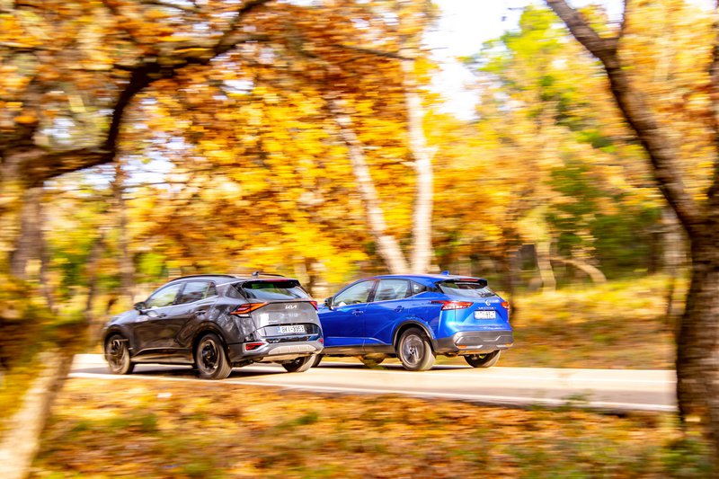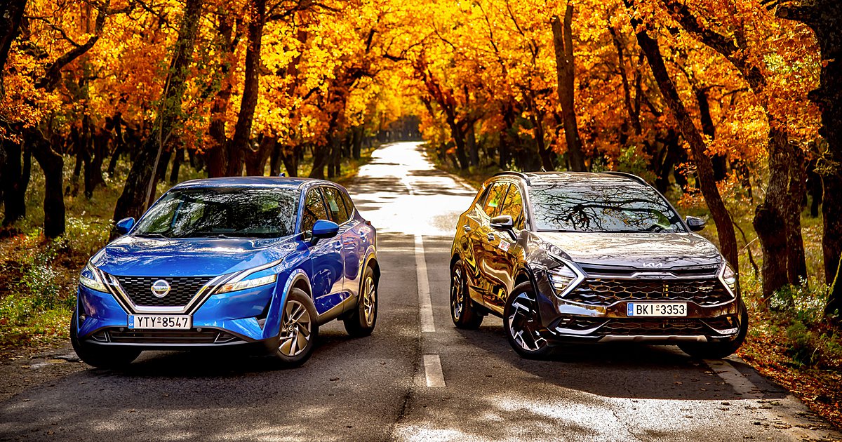 Ο λόγος για το Kia Sportage με τον βενζινοκινητήρα των 1.6 T-GDi των 180 PS και την υποβοήθηση του 48V hybrid συστήματος και για το Nissan Qashqai 1.3 DIG-T με τους 158 PS, το οποίο συνοδεύεται, επίσης, από ήπια υβριδική υποβοήθηση 12V. Δύο SUV που, καθώς έχουν μήκος της τάξης των 4,5 m, κατατάσσονται χωρίς αμφιβολία στην κατηγορία C-SUV και έχουν να αντιμετωπίσουν  πολυπληθή ανταγωνισμό που περιλαμβάνει μοντέλα όπως το Citroen C5 Aircross, Hyudai Tucson, Ford Kuga, Peugeot 3008, Volkswagen Tiguan κ.λπ.