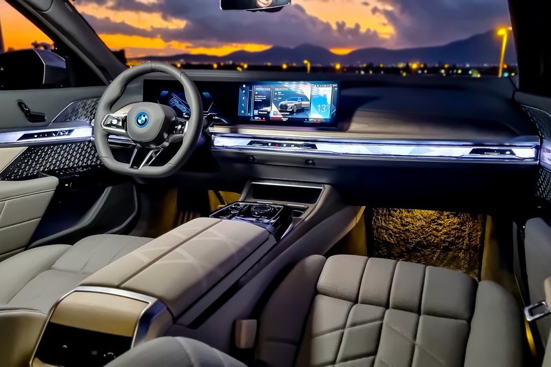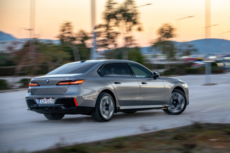 Πολυθρόνες από Lear-jet για τους πίσω επιβάτες και τιμόνι σπορ αυτοκινήτου για τον οδηγό καθορίζουν τον ιδιαίτερο χαρακτήρα της νέας γενιάς της ναυαρχίδας της BMW, η οποία στην πλήρως ηλεκτρική και τετρακίνητη εκδοχή της, που οδηγούμε, αποτελεί ένα εξαιρετικό δείγμα υπερπολυτελούς λιμουζίνας.