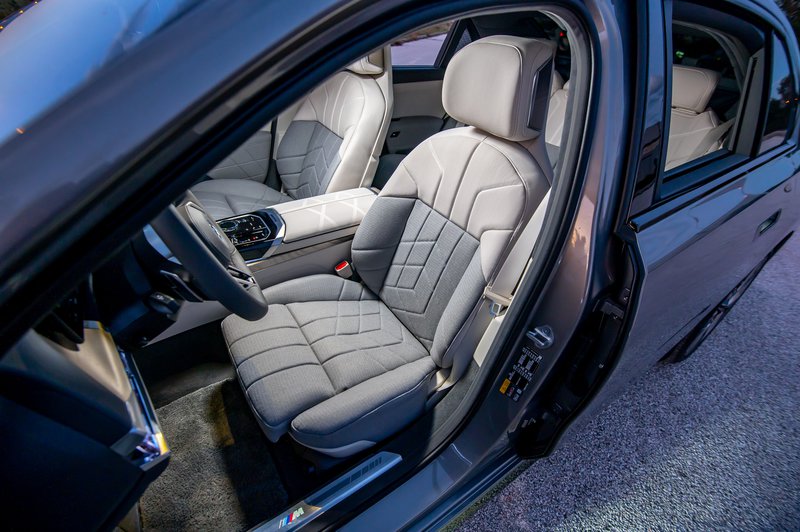 Πίσω από αυτήν τη μοναδική αίσθηση που εισπράττεις, βρίσκεται μία καταπληκτική, ηλεκτρονικά ελεγχόμενη αερανάρτηση, η οποία πραγματικά ισοπεδώνει τα πάντα. Είναι πολύ λίγες οι φορές που θα νιώσεις κάποια μικρή αναπήδηση, μία στοιχειώδη ενόχληση από κάποια λακκούβα ή κάποιο σαμαράκι – και θα πρόκειται για ενόχληση που έχει να κάνει κυρίως με τα χαμηλού προφίλ εξειδικευμένα ελαστικά που φοράει η i7 (Pirelli P Zero 255/40-R21 εμπρός και 285/35-R21 πίσω). Ενώ στην Εθνική οδό το ταξίδι γίνεται απλώς μία απόλαυση – και ναι το δικό της ρόλο σε αυτό παίζει και η ηχομόνωση (η οποία είναι τέτοιου επιπέδου, ώστε στη φωτογράφηση να μην μπορούμε να ακούσουμε τις οδηγίες του πλησίον ευρισκόμενου φωτογράφου χωρίς να κατεβάσουμε το παράθυρο), αλλά και η άνεση που προσφέρουν τα ντυμένα με απαλό κασμίρι καθίσματα – τα οποία, βεβαίως, δεν έχουν αντίστοιχό τους σε άλλα μοντέλα της BMW. Είναι ό,τι καλύτερο μπορείς να συναντήσεις σε BMW και από τα καλύτερα που έχουμε δει γενικώς…