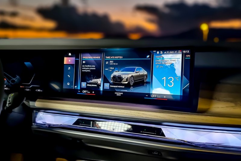 Το πόσα και τι είδους ηλεκτρονικά συστήματα συνοδεύουν την i7 είναι δύσκολο να το περιγράψει κάνεις. Θέλει… διάβασμα, θέλει να αφιερώσεις χρόνο και να ασχοληθείς με τη δέουσα προσοχή για να μάθεις πώς να χειρίζεσαι όλο αυτό το πακέτο το οποίο νομίζεις ότι δεν έχει αρχή και τέλος. Σίγουρα το πιο εύκολο είναι να επιλέξεις τη λειτουργία του αυτοκινήτου (Drive Mode) μεταξύ των προτεινόμενων Expressive, Personal, Sport κ.λπ. Όπως, επίσης, σχετικά εύκολα απολαμβάνεις την ημιαυτόνομη οδήγηση (ακόμα και μέσα στην πόλη) αφήνοντας τιμόνι, γκάζι και φρένα στον έλεγχο του αντίστοιχου ηλεκτρονικού συστήματος της i7. Ενώ το αυτόματο παρκάρισμα/ξεπαρκάρισμα, με δυνατότητα μάλιστα απομνημόνευσης θέσεων στάθμευσης, σε απαλλάσσει από ένα ακόμα βραχνά…