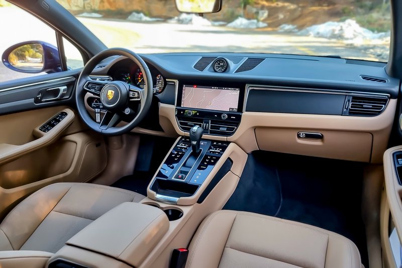 Ανοίγεις τη στιβαρή πόρτα και εντυπωσιάζεσαι από την ποιότητα συναρμολόγησης. Το εσωτερικό της συγκεκριμένης Macan σε αποχρώσεις μαύρο-μπεζ συνδυάζει μοναδικά την άνεση με την πολυτέλεια. Αμέσως σε κερδίζουν τα καθίσματα, που συνδυάζουν την πολύ καλή πλευρική στήριξη με την άνεση. Σε φτιάχνει, όμως, και αυτό που βλέπεις μπροστά σου. Το τριάκτινο τιμόνι κατευθείαν από την 911, ο πίνακας οργάνων με το στροφόμετρο στο κέντρο, αλλά και σε δεύτερο βαθμό η εξαιρετικών γραφικών οθόνη πολυμέσων των 10,9” στο πάνω μέρος της κεντρικής κονσόλας. Στο κάτω μέρος της κονσόλας τον πρώτο λόγο έχουν οι διακόπτες αφής που προσδίδουν μια μοντέρνα εικόνα, αν και στη χρήση κάποιες φορές χρειάζονται δεύτερη προσπάθεια.