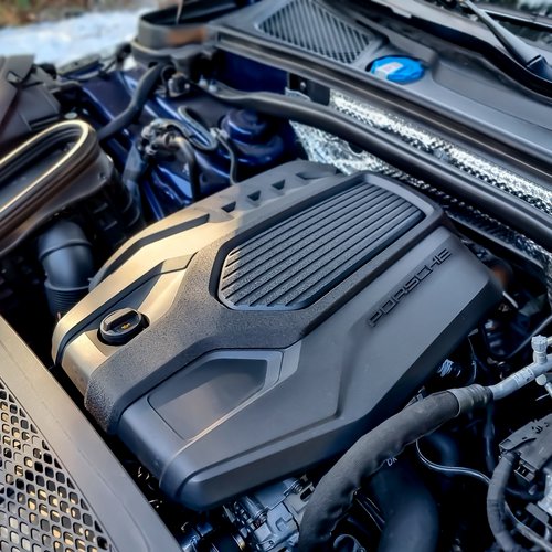 Ψάχνεις για μπουτόν εκκίνησης, αλλά μάταια. Όπως κάθε Porsche που σέβεται τον εαυτό της, έχει κλειδί, που πρέπει να το τοποθετήσεις αριστερά από το τιμόνι και να το περιστρέψεις για να πάρει μπροστά ο κινητήρας. Οι ηλεκτροκινητήρες για την κίνηση του αμαξώματος λάμπουν διά της απουσίας τους και, ναι, χαιρόμαστε γιατί εδώ έχουμε μόνο έναν καλό βενζινοκινητήρα, μια εξελιγμένη τετρακίνηση, ένα πολύ καλό πλαίσιο, αλλά και μια εξαιρετική ανάρτηση, ώστε να ευχαριστηθούμε οδήγηση.