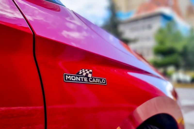 Προς… επίρρωση της σπορ ανατροφής τα σήματα «Monte Carlo» στα εμπρός φτερά θυμίζουν τον μεγάλο… χορηγό ονομασίας. Πάλι χωρίς ίχνος αστεϊσμού, η Skoda πληρώνει το Πριγκηπάτο του Μονακό για να παραχωρεί το trademark της ιστορικής πόλης με το διάσημο γραν πρι και το διάσημο ράλλυ, το οποίο άλλωστε είναι πολύ γνωστό όλα αυτά τα χρόνια στους αγωνιζόμενους με Skoda Fabia. Αν και όλα ξεκίνησαν από το Skoda Favorit Monte Carlo, πίσω, στο 1936! Πίσω, στο σήμερα, και στεκόμαστε λίγο ακόμη στο εξωτερικό για να δούμε τους προβολείς τεχνολογίας LED που είναι στάνταρ, τους προβολείς ομίχλης και τις γυαλιστερές μαύρες (πρόσεξε-πώς-παρκάρεις-δίπλα-σε-πεζοδρόμιο) ζάντες αλουμινίου, 17 ιντσών, με αφαιρούμενες, αεροδυναμικές πλαστικές επενδύσεις που θα σώσουν και τη ζάντα σε κάποια απροσεξία στάθμευσης.
