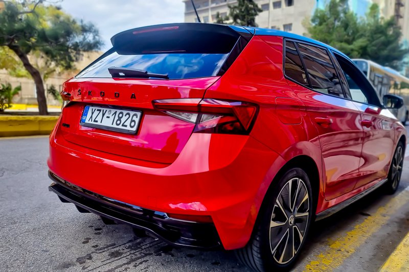 Εξωτερικά, δεν προσπερνάς εύκολα τις μαύρες λεπτομέρειες και την αντίστοιχη οροφή που με το… φεραρί κόκκινο χρώμα του αμαξώματος «δένουν» και δίνουν την εικόνα του κάτι παραπάνω σε ένα αμάξωμα με μήκος σχεδόν 4,1 μέτρα. Ομοίως, οι σπορ ποδιές εμπρός και πίσω και τα πίσω φιμέ τζάμια προσθέτουν πόντους αγωνιστικής αύρας ενώ, χωρίς αστεία, πολλά στοιχεία λειτουργούν και αεροδυναμικά καθώς το 0,28 του αεροδυναμικού συντελεστή θεωρείται ένα εκ των κορυφαίων.