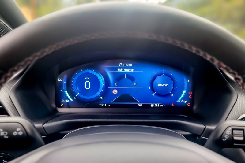 Αντικαθιστώντας το δυναμό, το σύστημα επιτρέπει την ανάκτηση και αποθήκευση της ενέργειας επιτρέποντας στη ροπή να αγγίζει τα 190 Nm από τις 1.900 rpm, φτάνοντας με overboost στα 220 Nm και ένα ηλεκτρικό boost από 20 επιπλέον Nm στο sport mode φτάνοντας συνολικά στα 240 Nm ροπής στις 2.500 rpm. Και αυτά, με τη σειρά τους, συμπληρώνονται με ένα… αξιοκούμπωτο χειροκίνητο κιβώτιο ταχυτήτων 6 σχέσεων, που συνάδει με το αυθεντικό σπορ look, της ST-Line έκδοσης, με σπορ εμπρός μάσκα, σπέσιαλ εμπρός και πίσω προφυλακτήρα, χρωμιωμένη απόληξη εξάτμισης και, περισσότερα από όλα, την απαραίτητη σπορ ανάρτηση. Μόνο που εδώ υπάρχουν και μερικά ακόμα… tokens, όπως είναι οι μαύρες αλουμινένιες ζάντες 18” με ελαστικά 215/50-R18 (τα Continental EcoContact 6), οι προβολείς Full-LED και ομίχλης με στατικούς λαμπτήρες στροφής και η έξτρα μεγάλη πίσω αεροτομή, που είναι βαμμένη σε μαύρο χρώμα (όπως και η οροφή, άλλωστε) κάνοντας την αισθητική του πράγματος, μαγεία.